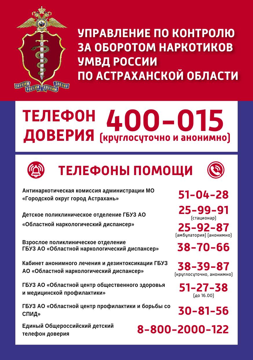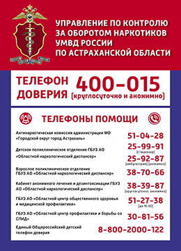 8(8512) 51-04-28 – антинаркотическая комиссия администрации МО «Городской округ город Астрахань»